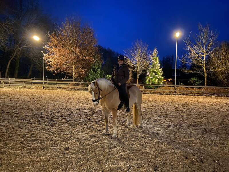 Linda beleeft al 14 jaar veel plezier aan het rijden van haar Haflinger ruin Aygo van Arlo.